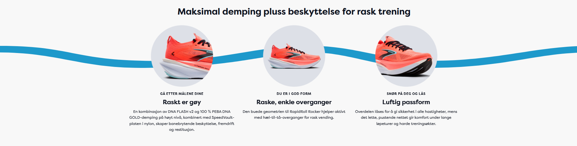 «Dette er en veldig myk tur. Jeg er imponert over demping, da den føles støttende og kjapt, men samtidig ikke for stiv. Jeg føler at skoen responderer på meg, og jeg kommer inn i et veldig godt spor med et flytende skritt. Det er en morsom tur!»